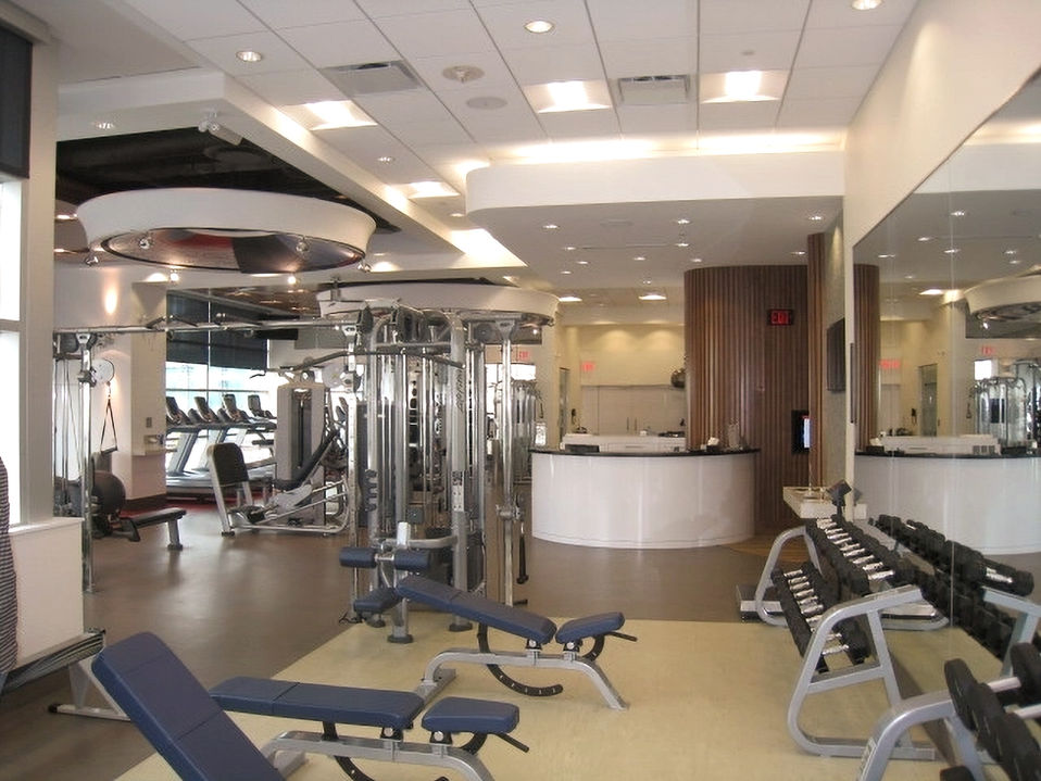 Mind and body health are greatly increased when the equipment is top-notch, the environment is fully-customizable, and the staff are knowledgeable and engaged. This high-end corporate facility was directed by the CEO, an avid sports enthusiast and philanthropist – he knew quality and requested the best for their employees. In a small footprint we were able to achieve a spectacular facility. The level of detail is unprecedented: for example in the cardio/yoga room the sprung wood floor rests on an additional 4” of neoprene waffle, the walls are soundproofed, the ceiling is stretched fabric with indirect lighting (based on Kahn’s Kimbell Art Center), The mirrors are all edge lit, all AV is cordless, and multiple window shading devices create a multi-functional environment.